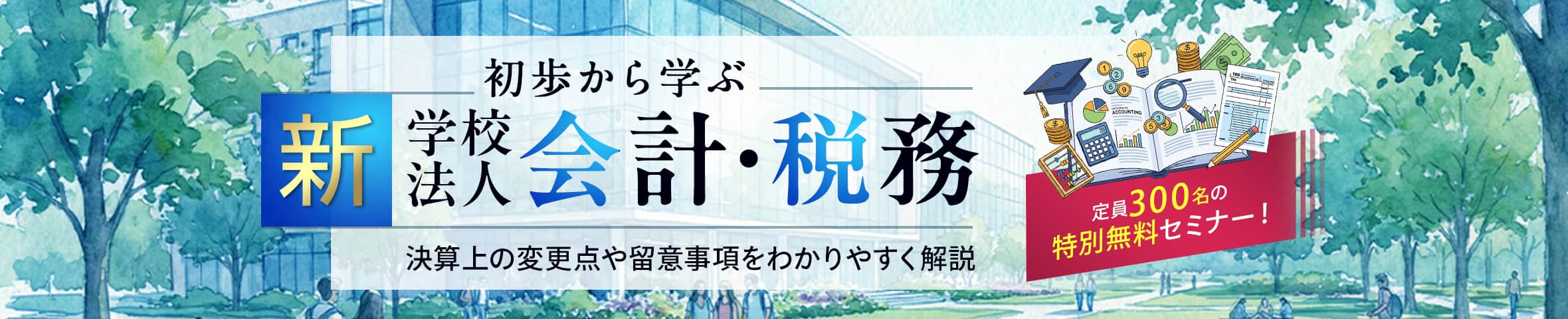 学校法人の新任教員・職員の方々や学校法人を新たに顧問先とするための知識が必要な税理士の方々が身につけておくべき必見の内容をお届けしますので、ぜひ、このセミナーを4月の新任教員・職員研修としてご活用いただければ幸いです。